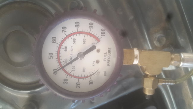 Check the injectors according to the guide. They seem to be working normally. However, perform a pressure test on the injection system, the results are: Pressure w / vacuum 38 to 40 psi (nominal, according to manual 33 to 38 psi); without vacuum 48 psi (nominal, according to manual, around 42 psi). In addition, after turning off the engine, the pressure gradually falls to zero in less than 1 minute, this should be maintained at least 1.5 kg / cm2 after 5 minutes. I tried to throttle the return hose but it still does not maintain the indicated pressure.