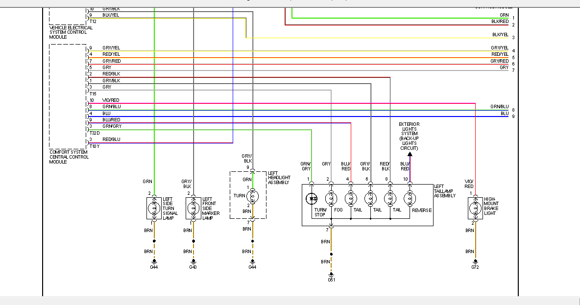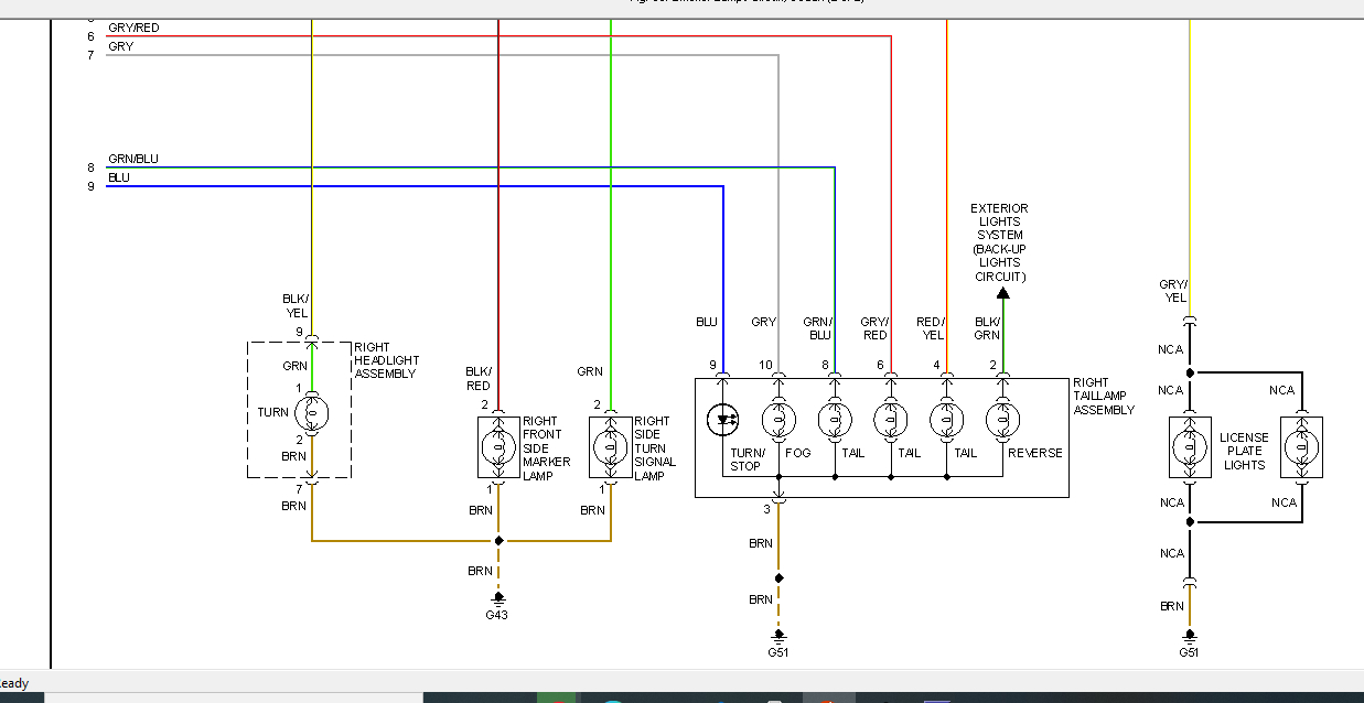Right rear tail lamp color coded wiring harness guide/diagram needed