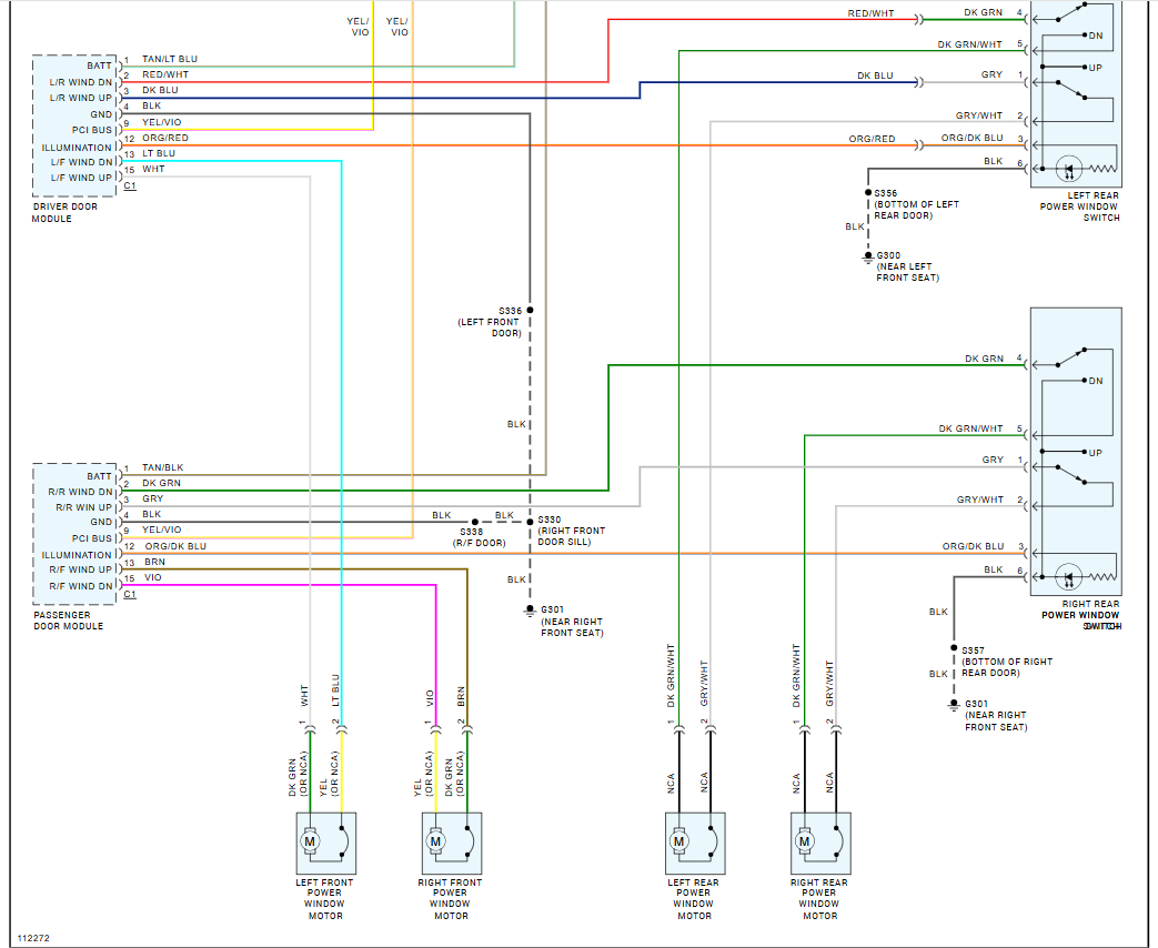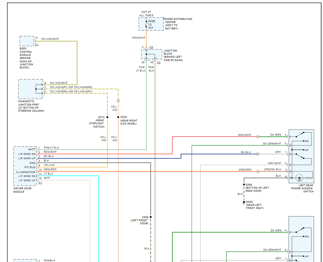 From both the driver and the Rt rr door switches the window goes down, not up. I'm able to hot wire the motor to make it go up. With auxiliary on, I'm getting 12V to both up/down feeds at the switch connection. The switch continuity tests as follows: