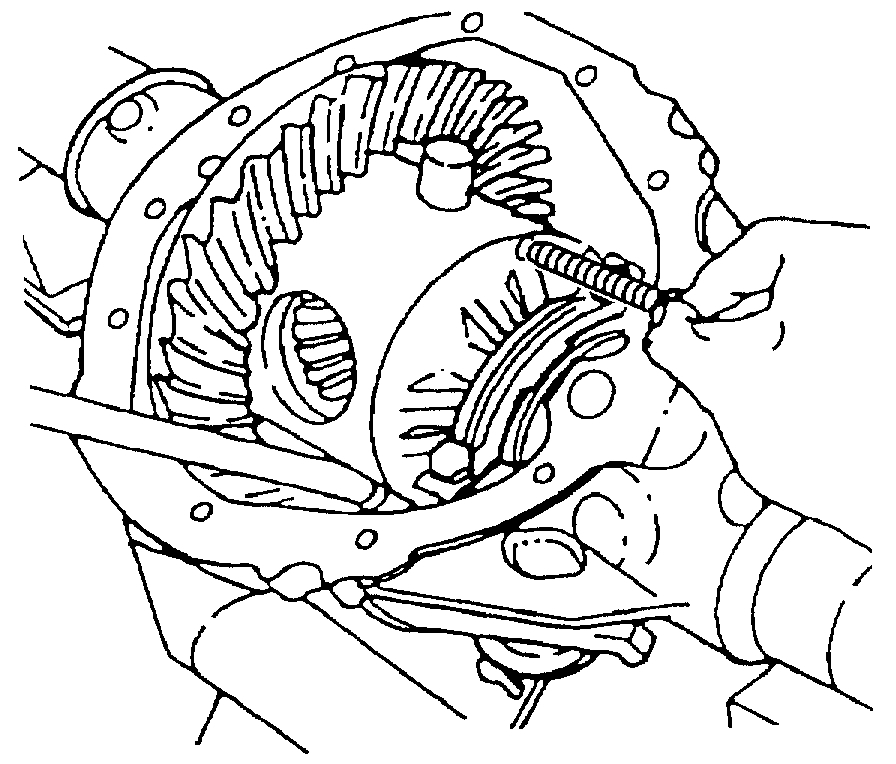 7. On axles with a locking differential, remove the shaft part way. Rotate the case until the pinion shaft touches the housing.
