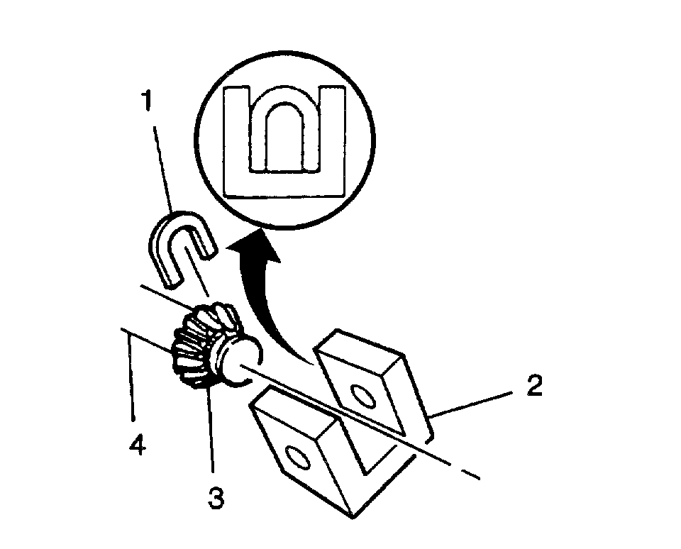 3. On axles without a locking differential, place the lock (4) on the button end of the axle shaft (1).