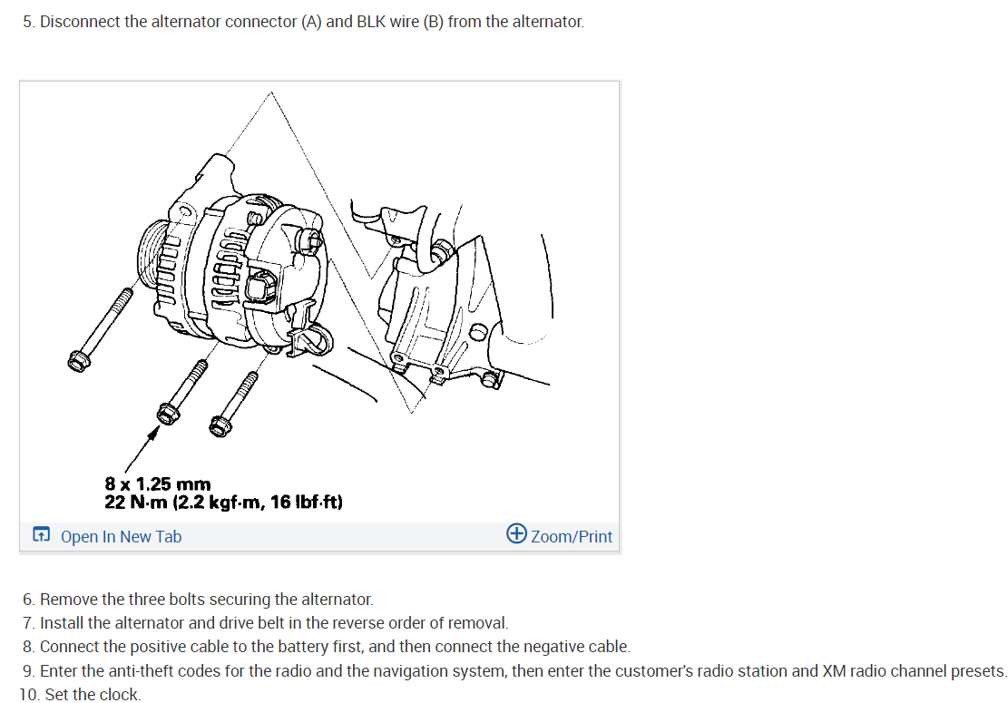 Here is how to change the alternator in case you need it or what to see what needs to be done. Check out the images (below). Let us know how it goes.
