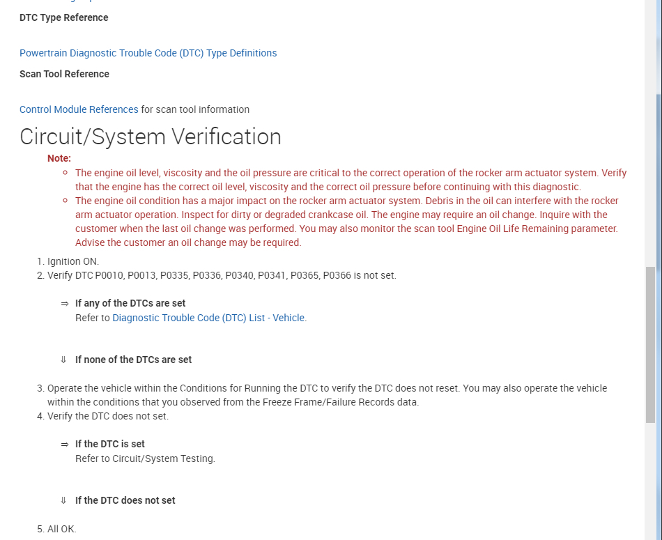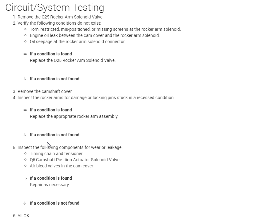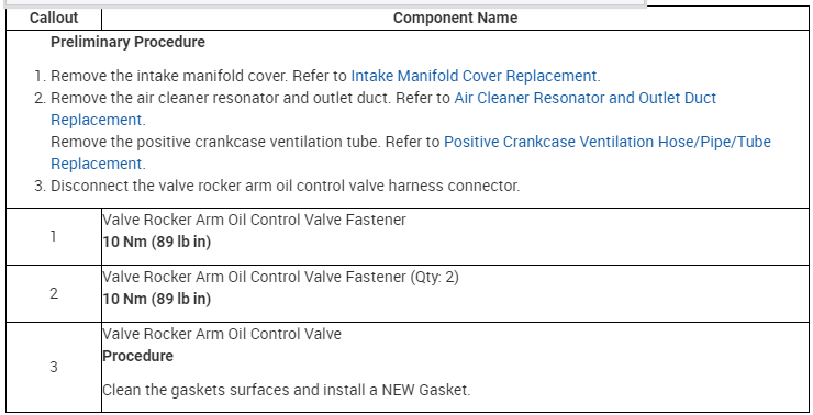 Note: If a previous rocker arm control solenoid came apart and pieces are stuck in the cam cover passages, this can cause any of the concerns to happen even when a new rocker arm control solenoid is installed.