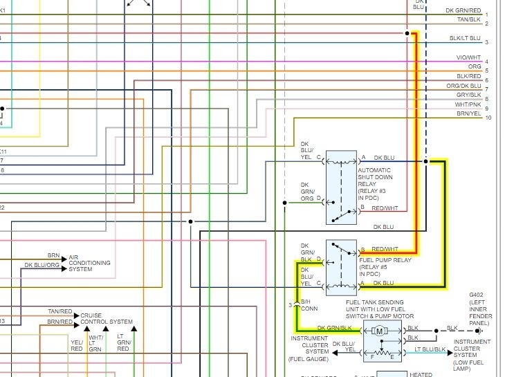 There is no fuel cutoff switch for the fuel pump. Fords have this switch.