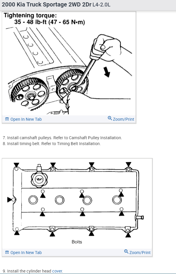 While I'm asking questions about the Kia and timing issues I'd like to verify which way running rotation is. Standing facing the engine do you rotate the crankshaft clockwise or counter clockwise to align the two cam sprockets to the back plate notches?? I have been turning clockwise. Thanks. JC