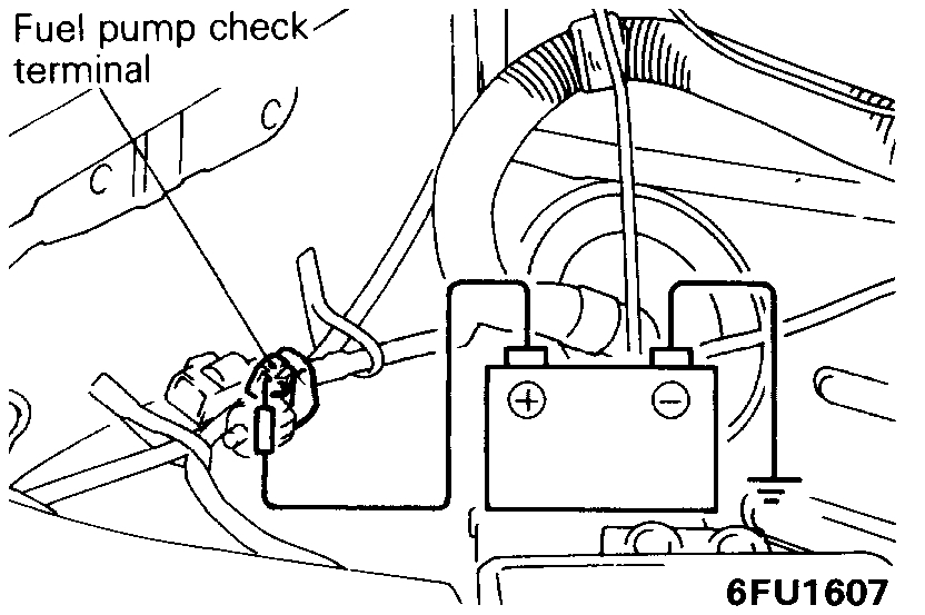 - Apply battery voltage to the terminal for activation of the fuel pump so as to activate the fuel pump.