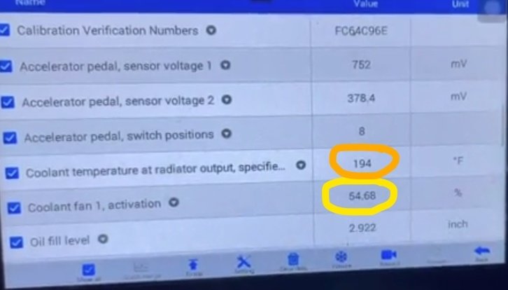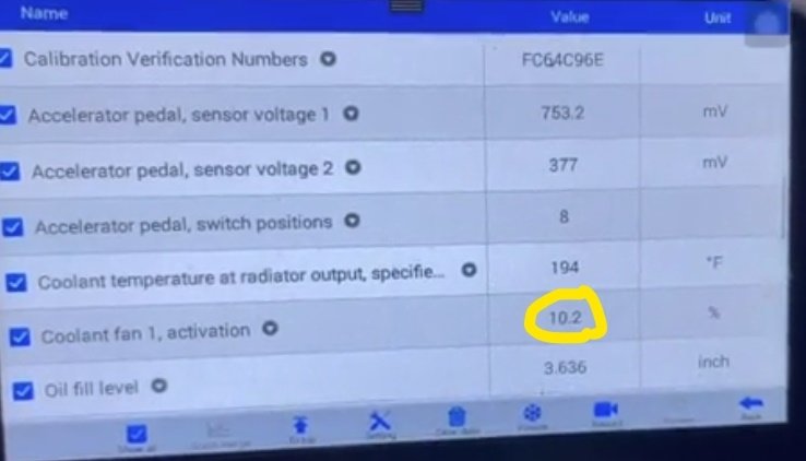 1. The Coolant temperature sensor is only reading (pics 1 and 2,3) and the cooling fan jumped from 10% to 54.4% and the car is nowhere near operating temperature.