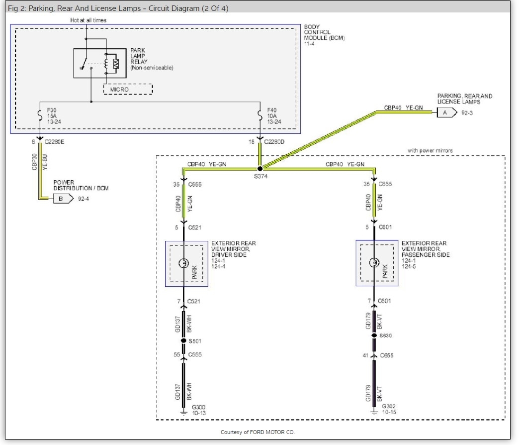 If the relay is functioning properly I have attached the wiring diagram for the running light circuit.