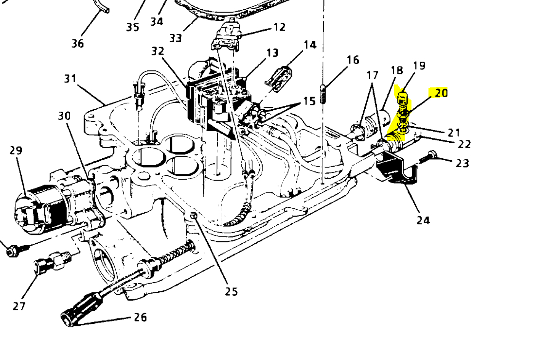 Next is an engine coolant temp sensor. It is located on the front top of the engine. See pic 2. Now since this is an OBD1 system, you can check for diagnostic trouble codes, but chances are this problem won't show up. What can happen is the sensor indicates extremely cold temps. As a result, the computer makes the air / fuel mixture extremely rich to run the engine. Although the sensor sends an inaccurate reading, the computer doesn't know it's wrong, so a code may not show up.