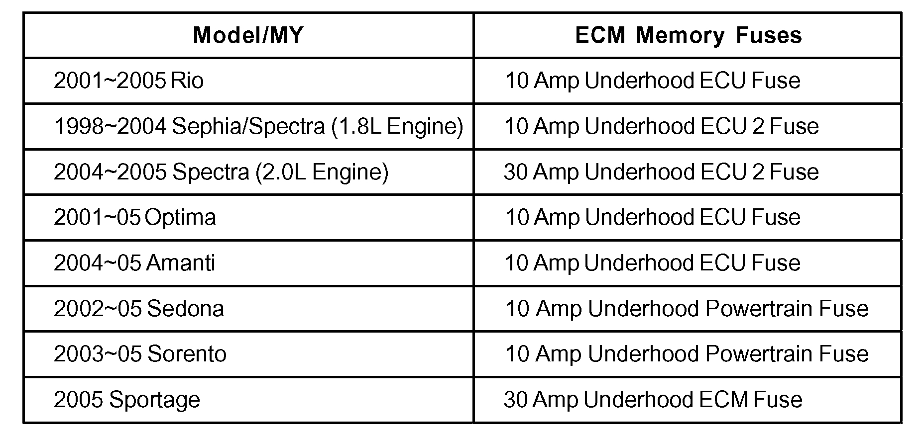 4. Remove the ECM memory fuse for 10 seconds and then re-install. This will reset the fuel trim adaptive values. Not all models use the scan tool to clear the adaptive fuel trim values.