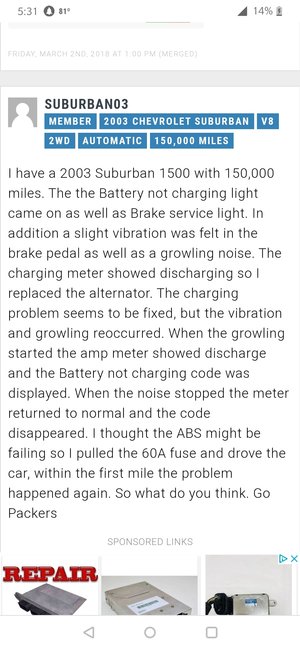 Started my truck this morning and the battery light came on with battery not charging message on the dash and then service brake booster message as well. I hear the same noise and feel the vibration in the brake pedal but it didn't last but just a minute and went away but the battery not charging message and battery light have continued all day is I've been driving. Did you pinpoint the issue? What is the solution?