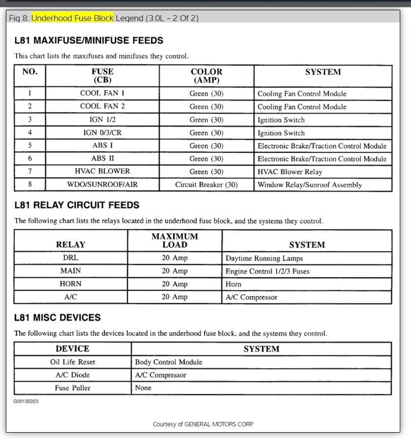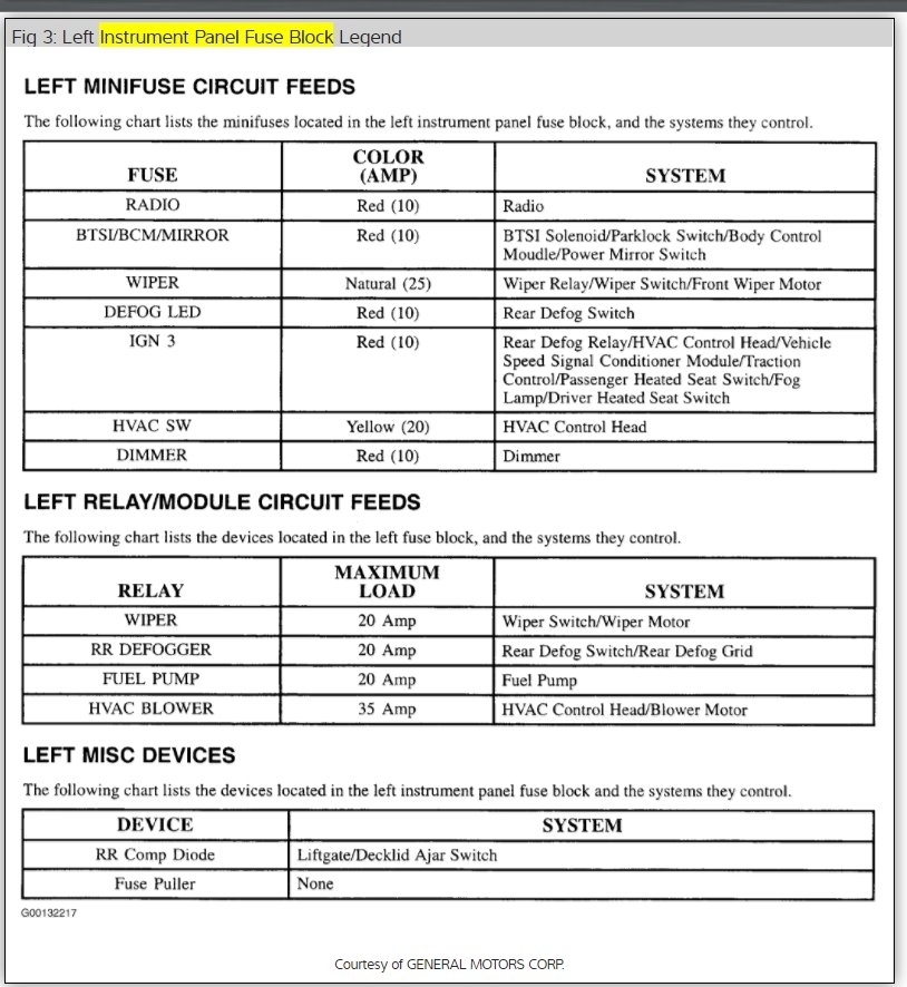 I have found the fuse and relay panel diagrams for the entire car (below) Also here are some test guide that can help you are well.