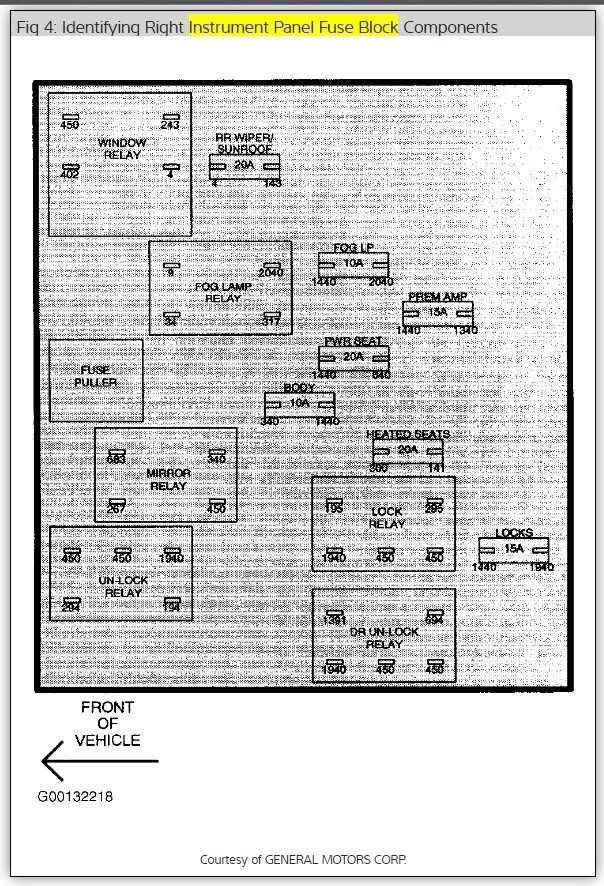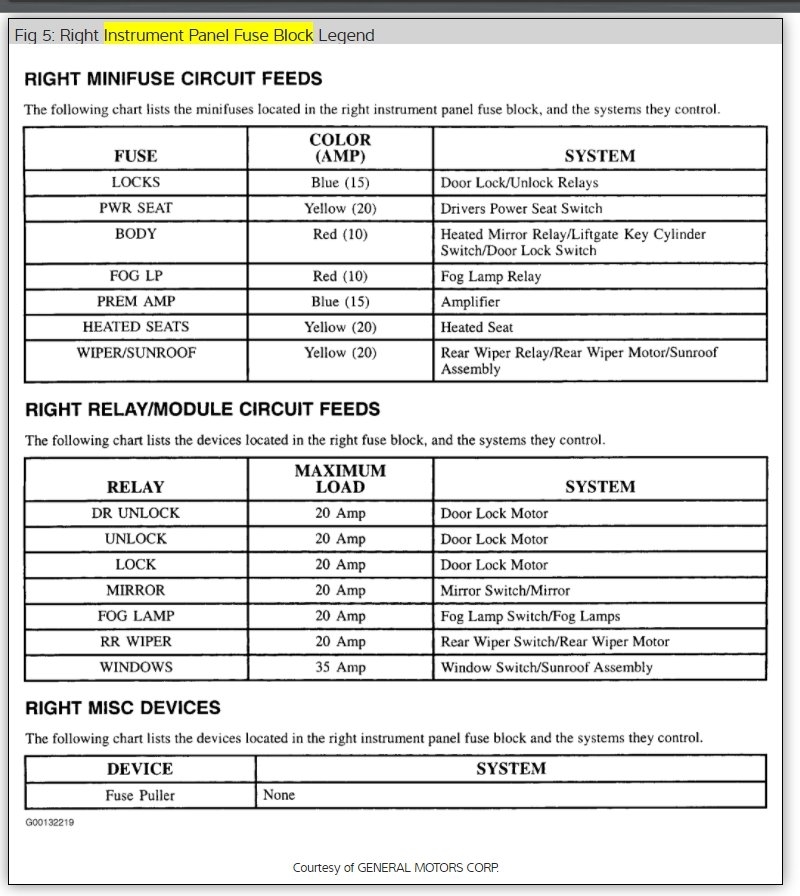 The door locks will not work nor will the driver side seat adjustment. The fuse panel cover on the passenger side is missing and the owners manual does not have the layout of the fuses. Where can I find the fuse panel layout.