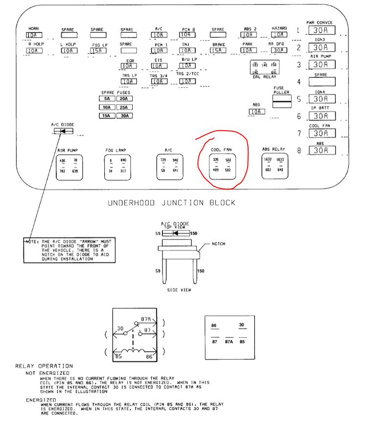 First you want to check the relay. The relay is located under the hood in the battery junction box (see diagram below).