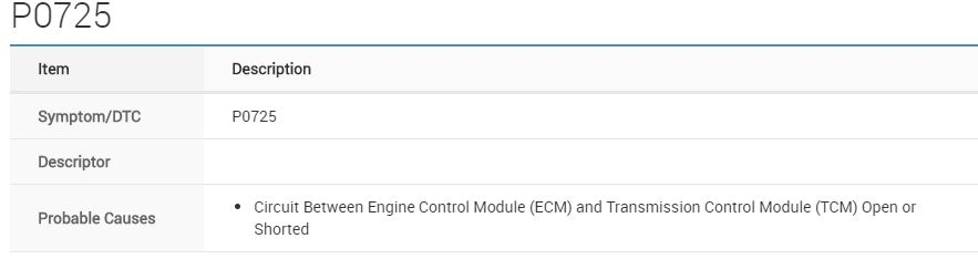 DTC P0725 ENGINE SPEED SIGNAL