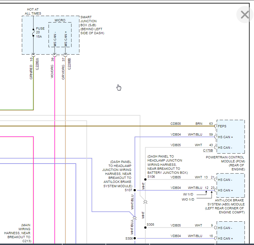 what explains the fact that, Can high gives me 2.83 dcv, while Can low give 2.03 dcv? Normally i expected both to give total reading of 5 dcvs. Now if you noticed from the dtc, the ABS does not appear as well, an the car runs down battery.
