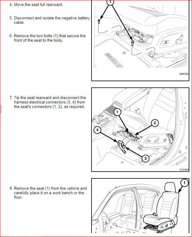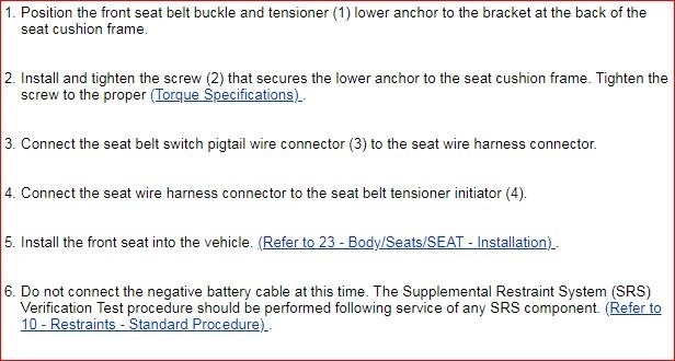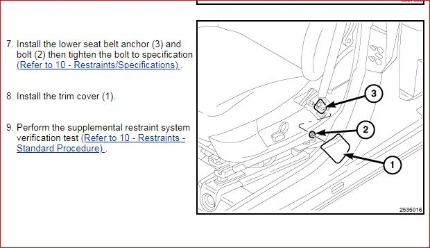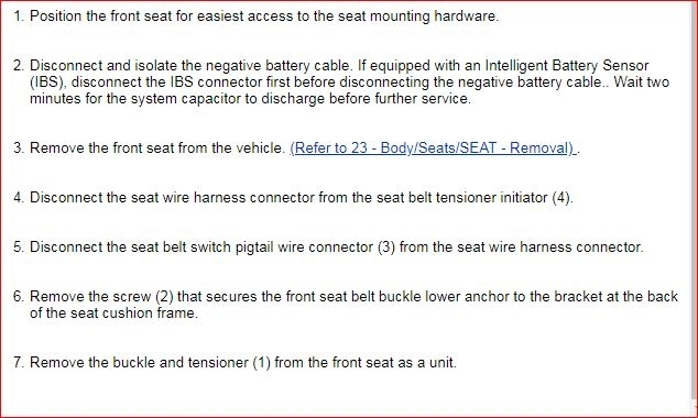 When you say seat belt latch, I assume you are referring to the buckle. They are pretty interchangeable terms but I just want to make sure I provided what you are looking for. Here is the complete procedure. Please make sure you read through the entirety of the documents because the SRS or airbag system is involved and I don't want to inadvertently activate the system.