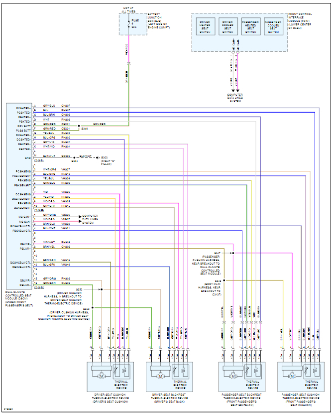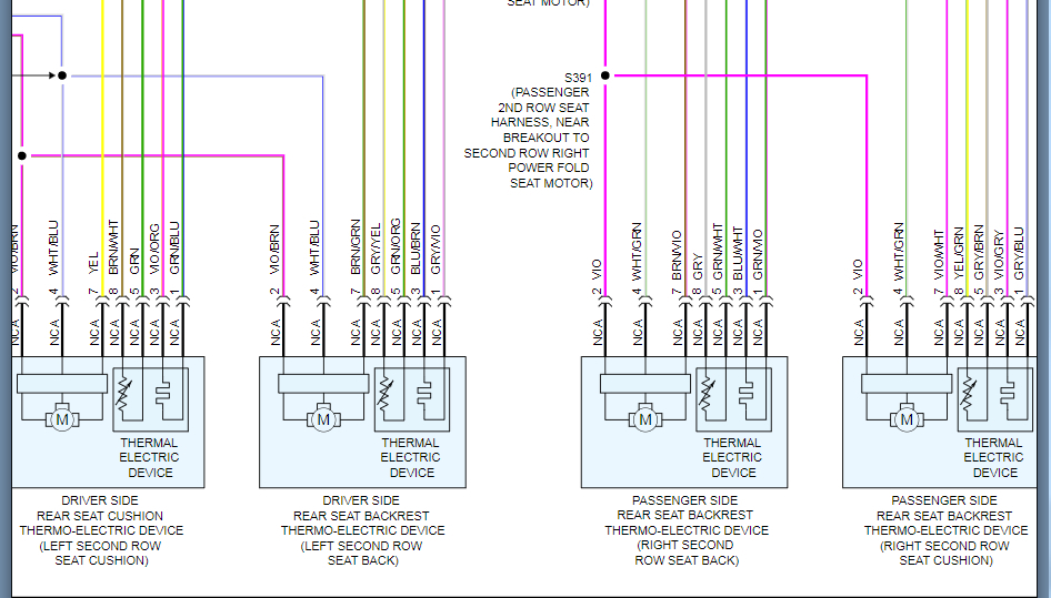 Those connectors do not appear to be for the heated and cooled seats. Are these the connectors for the modules that are under the front seats? If so, those are the driver and passenger seat modules which are different. I attached the wiring diagram for the driver seat module.