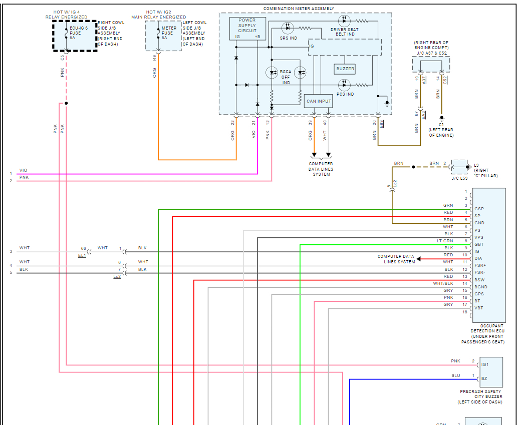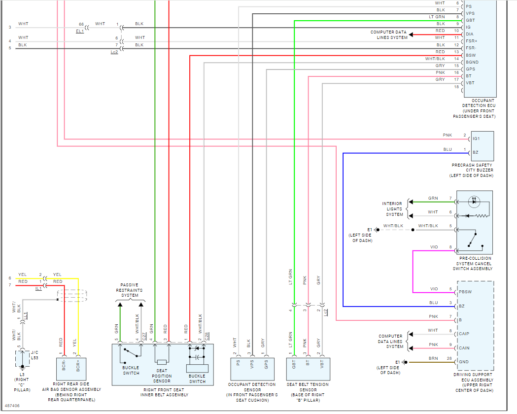Can you help with the circuit diagram for Toyota Prado and Hilux. I want to pick the signal responsible for the Alarm on and off when seat belt is buckled or otherwise.