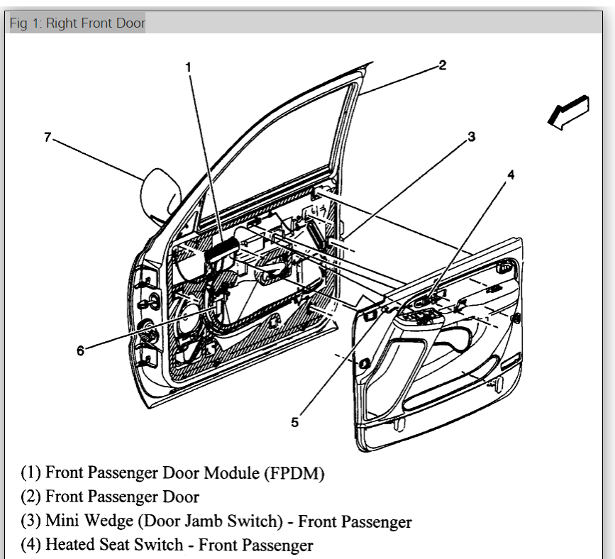 After passenger door module (PDM)/switch assembly replacement, the following procedures must be performed in the order that they appear for the tire pressure monitor (TPM) System to function properly. The PDM also requires keyless entry transmitter programming after replacement. Refer to Transmitter Programming in Keyless Entry.