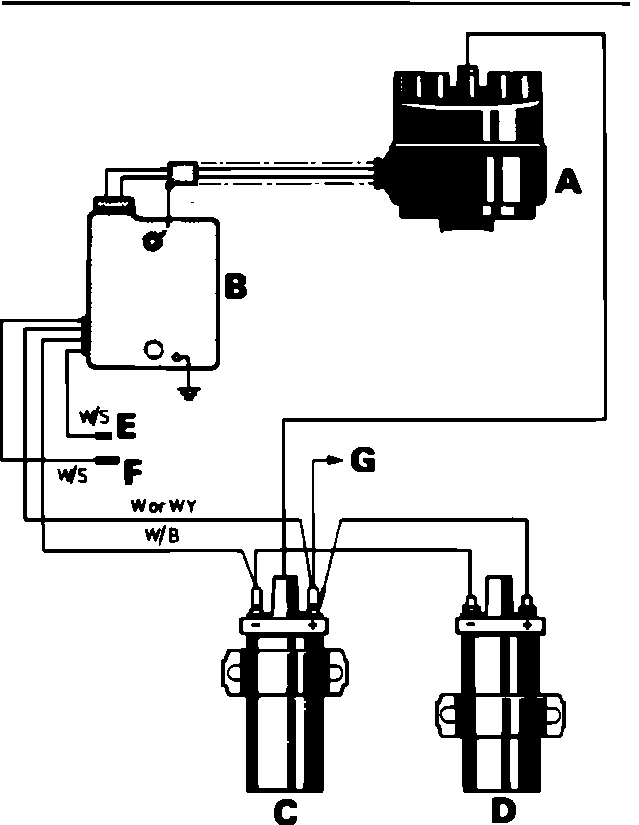 Disconnect the distributor pick-up leads from the amplifier 'B'. Measure the resistance of the distributor pick-up 'A' with an ohm meter. The resistance should be 2.2 to 4.8 K ohms. An incorrect reading indicates a faulty pick-up coil, If test is satisfactory reconnect the pick-up leads.