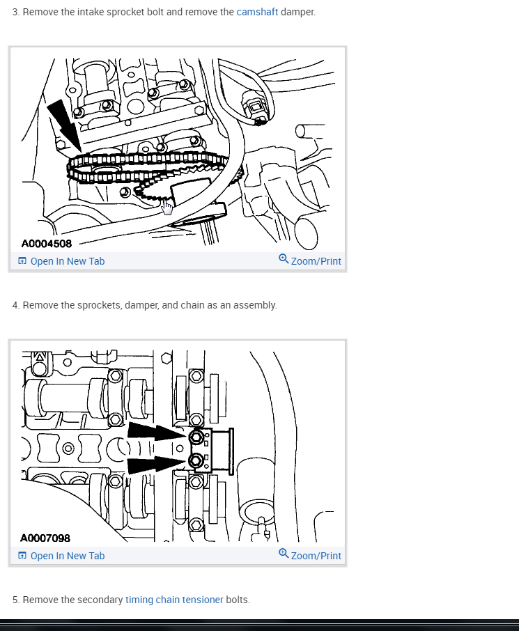 Here is the process for installing the secondary timing chain. Check out the diagrams (Below). Please let us know if you need anything else to get the problem fixed. Let me know if you have questions.