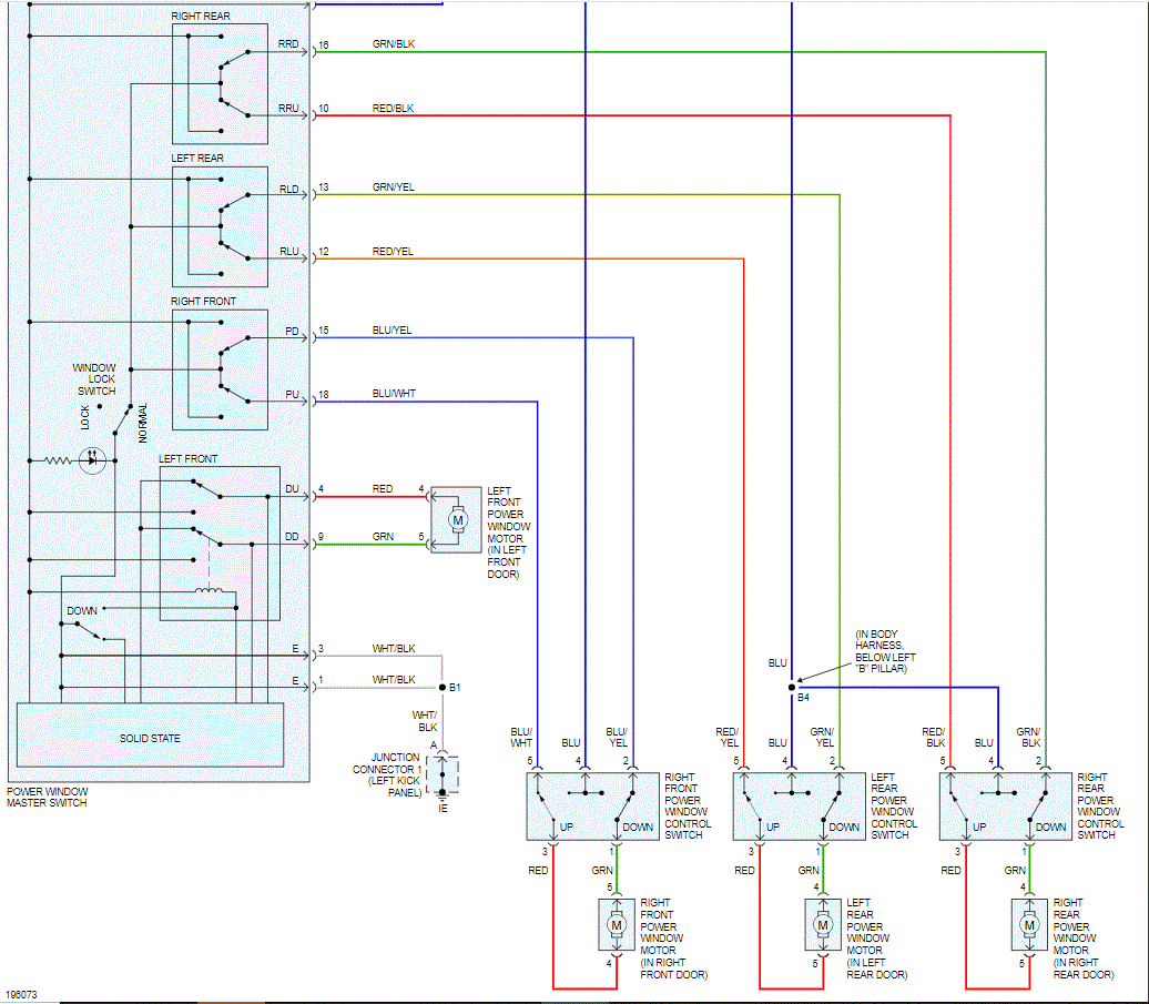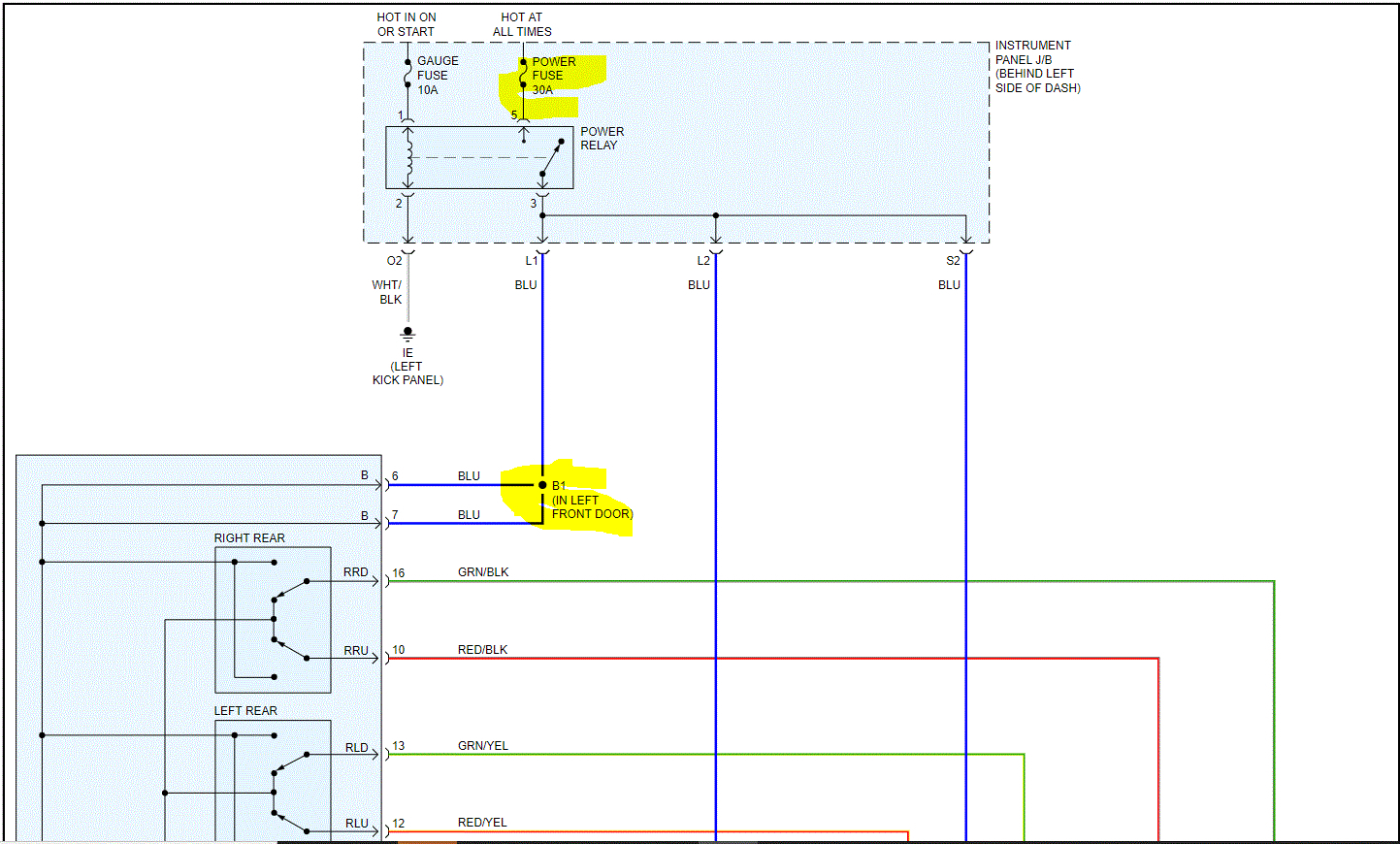 All windows are powered by one fuse. For the left side to fail, either someone would have had to open the door panel and damage the power supply or we have a switch-related issue. I attached the wiring schematic below for the windows. Note that the blue wires provide power to the front and rear windows. The rear windows (left and right) get power from the same wire. The right and left front each have a blue wire providing power. So, I'm not sure if that is something someone would have done.