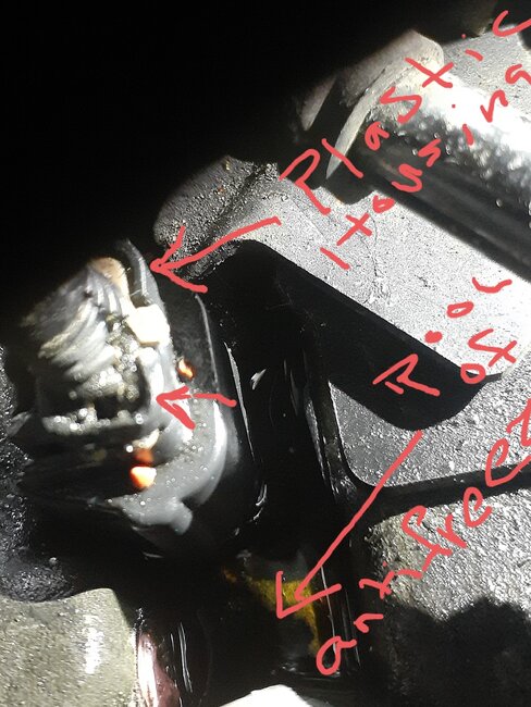 I thought I was trying to remove the engine temperature coolant sensor, (etc), but now I don't think that's what it is. The new etc sensor I bought looks different. I was told there etc was close to the thermostat housing and goes into the engine and that's what this does. Whatever this sensor is, it's leaking antifreeze. It's sitting in a pool of it. I can't figure out how to get the electrical thing that plugs into it off either. The plastic housing that goes over it splits in half and came off already and I don't want to break it. I will try and send a video and pictures.