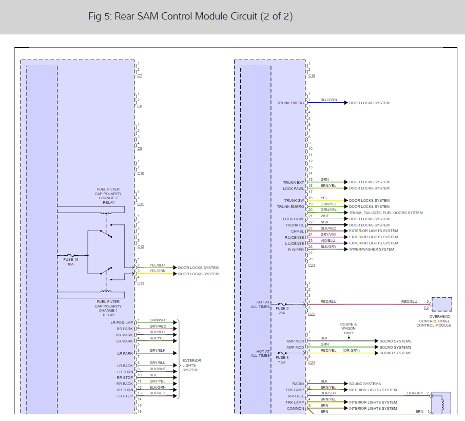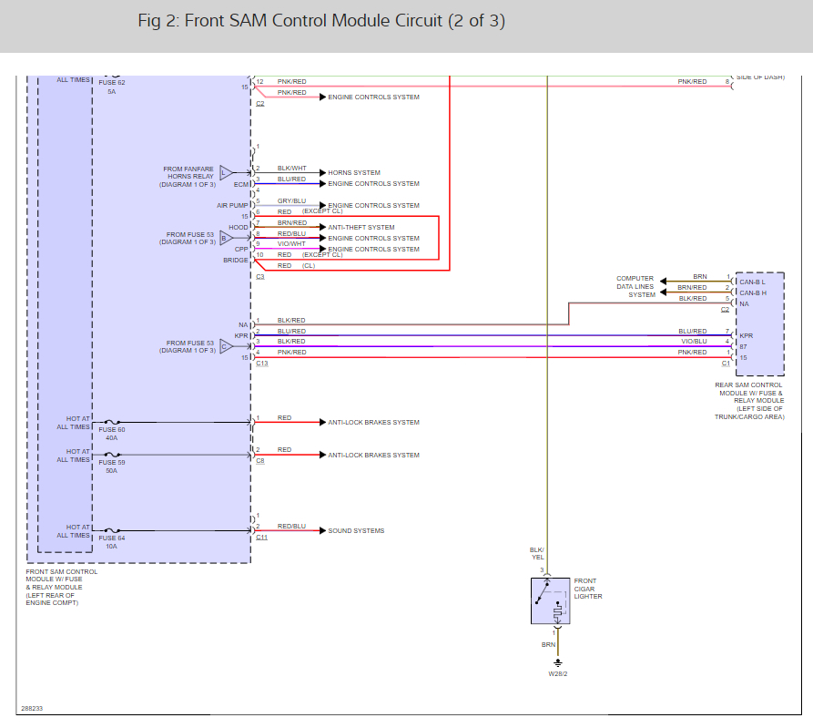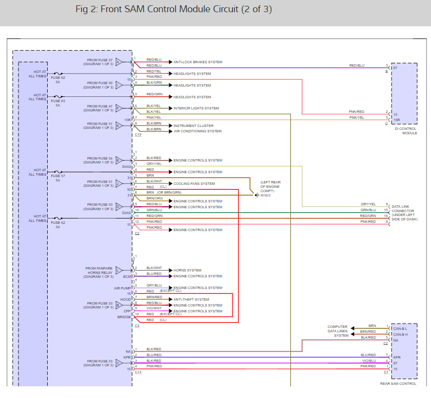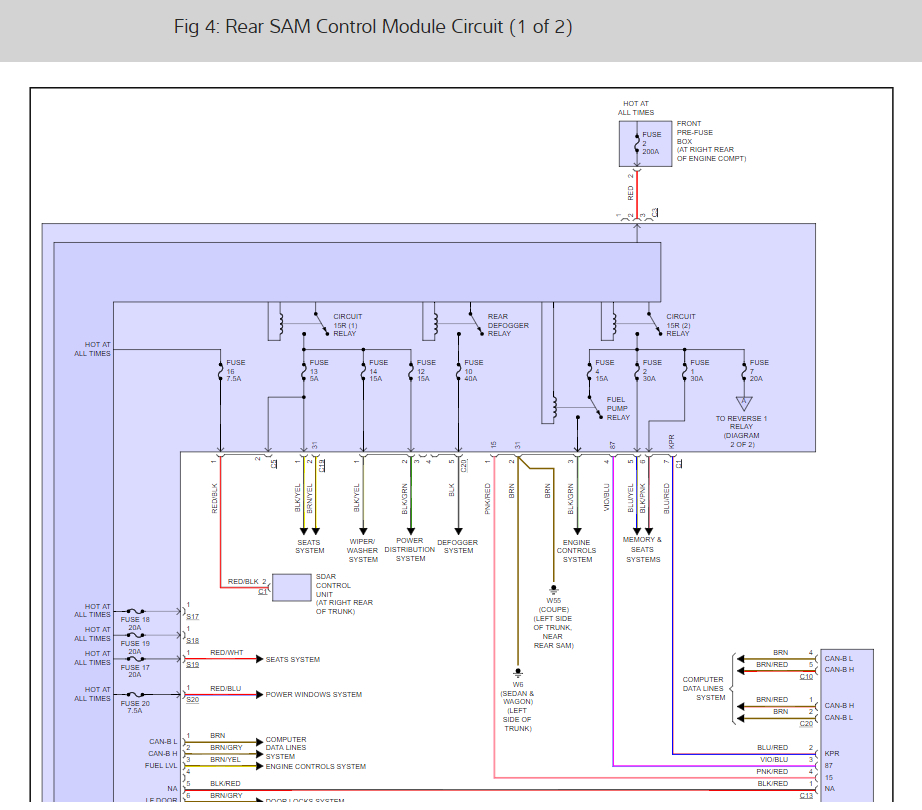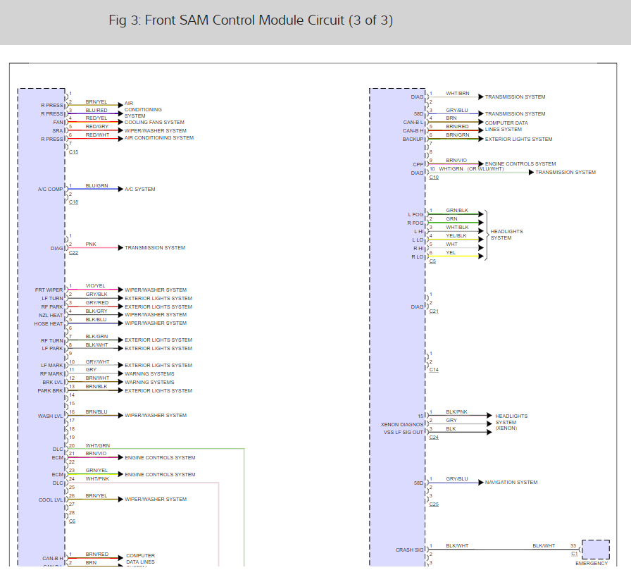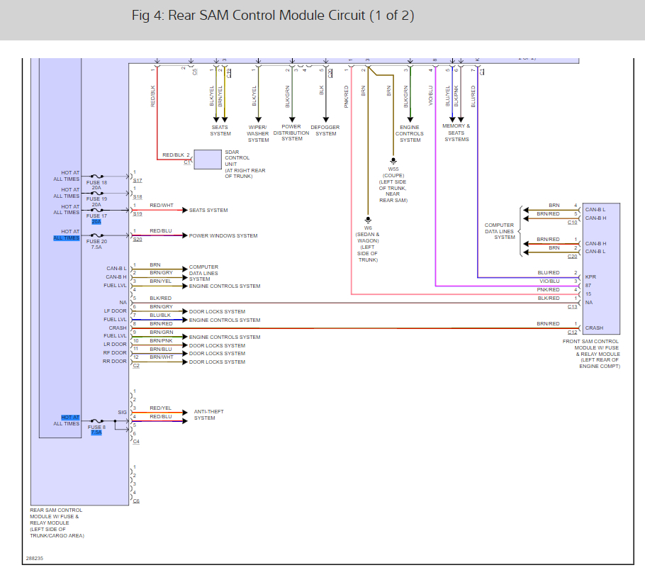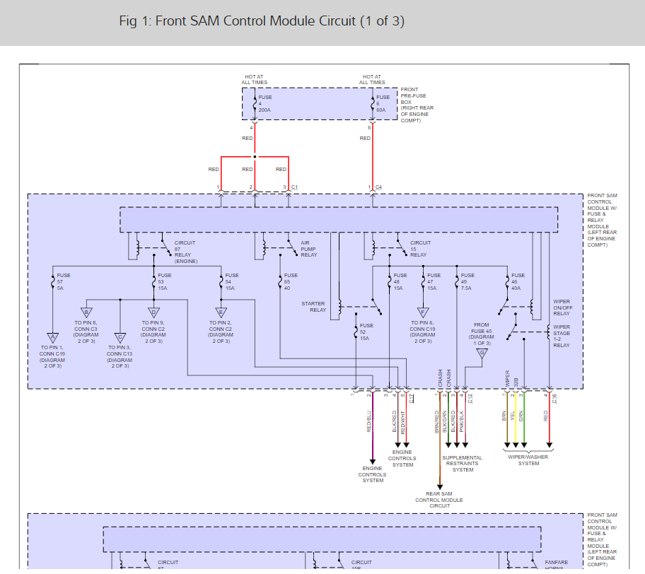 Here are the SAM module locations and the wiring diagrams so you can see how the system works along with the fuse panel locations and identifications. You can follow this guide to check the wiring before you replace the SAM modules. This will need to be done by the dealer or a shop because they will need to be programmed.