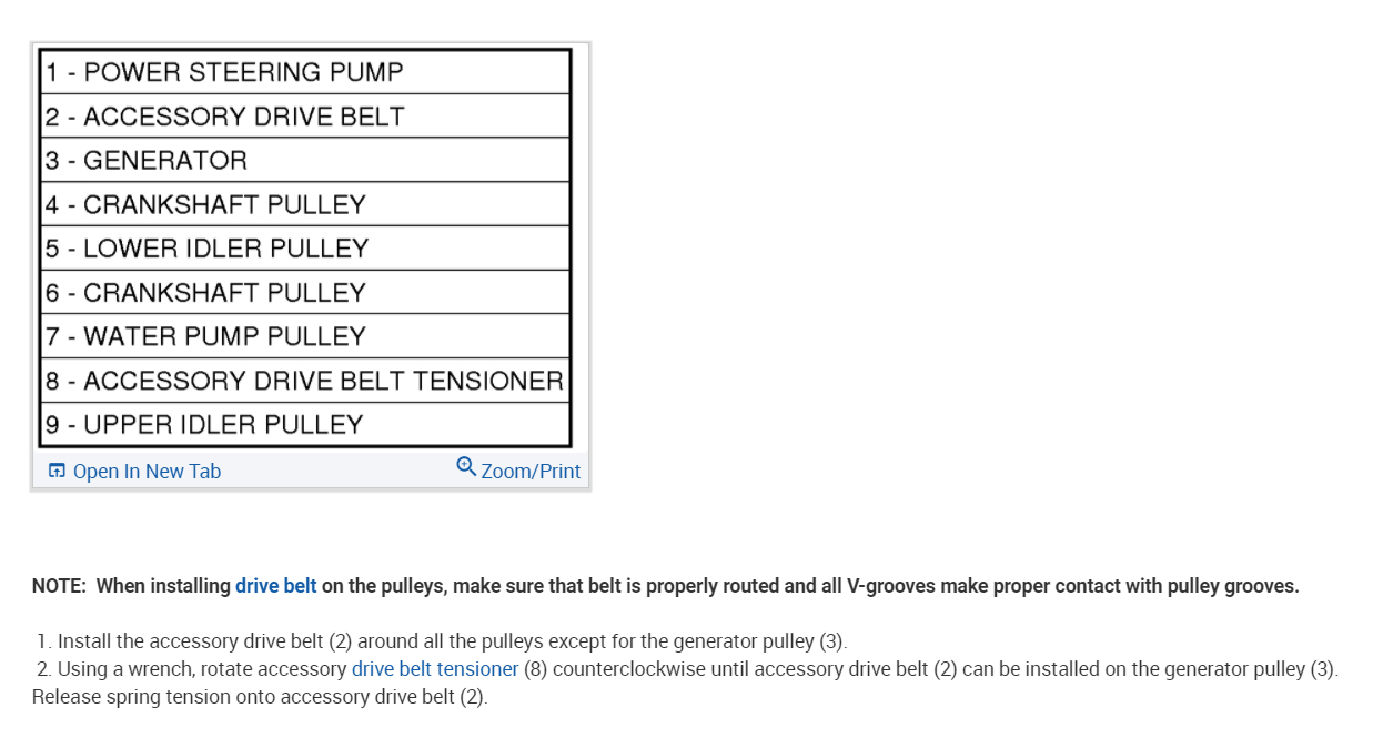 Good afternoon. Here are the instructions and belt routing diagrams below (Both engines) Check out the diagrams (Below). Please let us know if you need anything else to get the problem fixed.