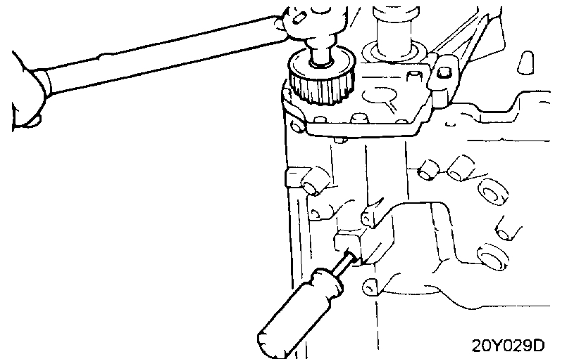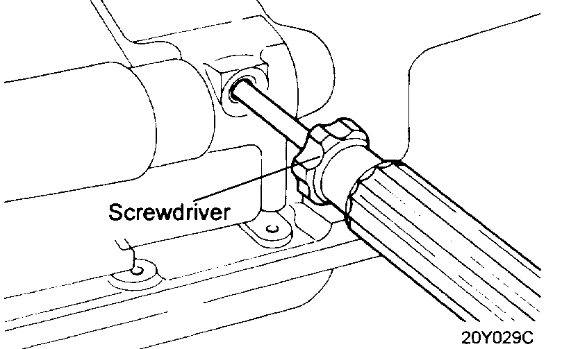 11. Insert a screwdriver through the plug hole in left side of cylinder block to keep shaft in position.