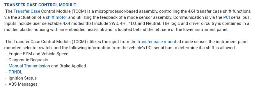 It could be the Transfer Case Control Module is inconsistent or faulty. Try a reset on the system unhook both battery terminals clamp them together wait 10 minutes and connect them back onto the battery. I'm attaching TCCM information and location below. Let us know if this information was helpful and if you need more info.