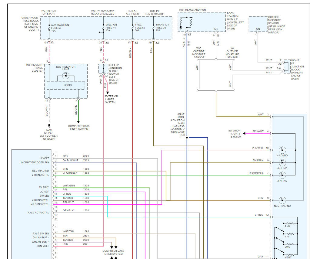 I would like to find a set of trouble shooting guides that will help me detect what is wrong, like bad grounds or broken wires. Simply knowing what conditions need to be set; like the key on and the switch in 2H. I should see such and such voltages on what pins. My scanner does not show any codes, but it is a Launch CRP123 CReader professional and may not show all the codes.