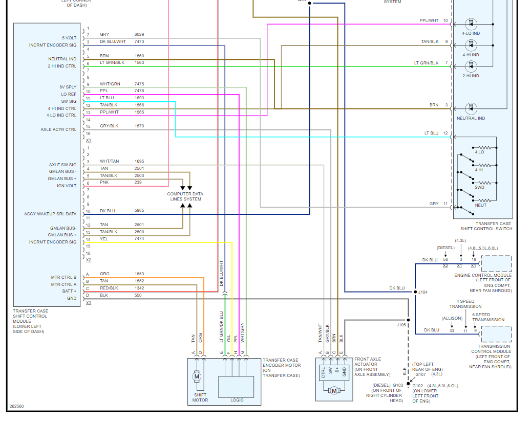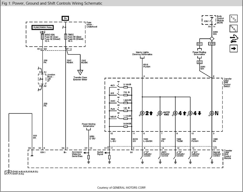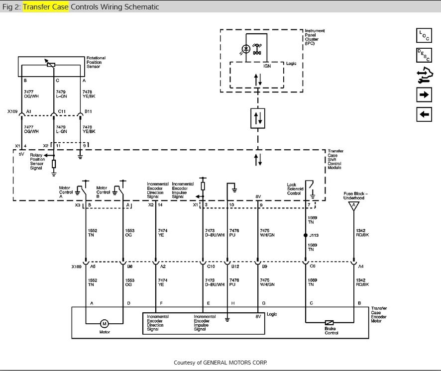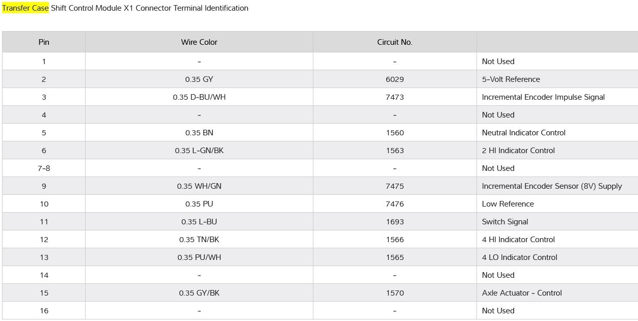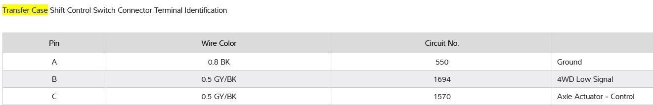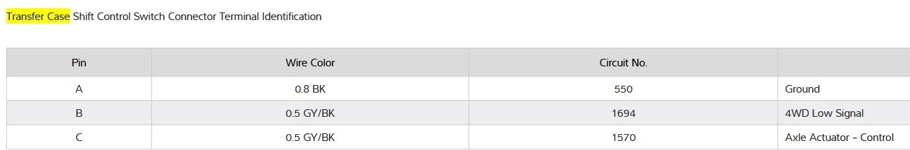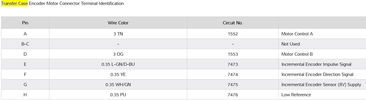 I have the truck listed above with the NQH Magna Power-train transfer case. The "Service 4x4" notice has come on and I would like to test the transfer case shift motor to see if it is bad. Do you have the electrical schematic of the electrical connector on the transfer case shift motor?
