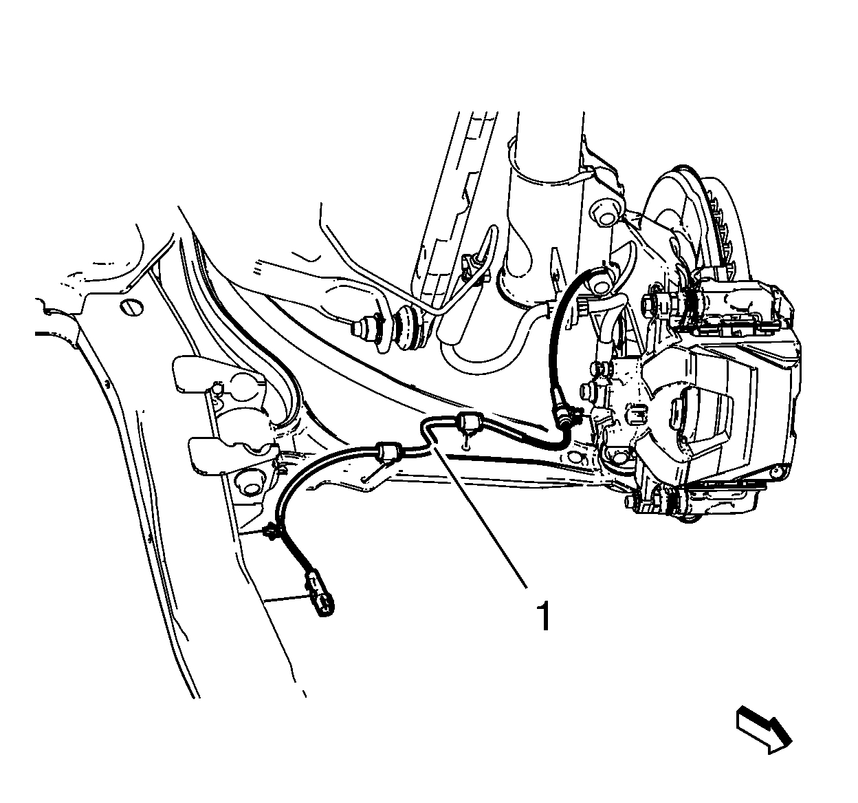 5. Install the wheel speed sensor (1) to the steering knuckle.