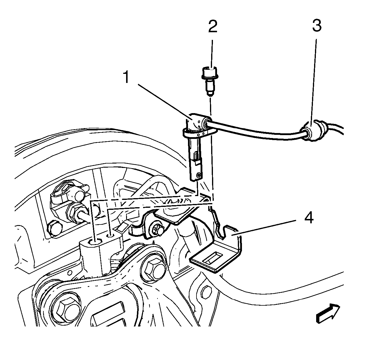 3. Remove the wheel speed sensor screw (2) from the steering knuckle.