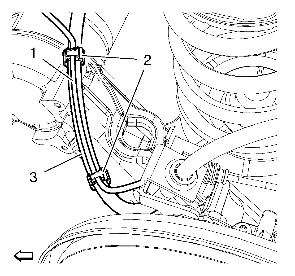 2. Remove the rear brake hose from the wheel cylinder and the rear backing plate. Refer to Rear Brake Hose Replacement (Disc Brake) See: Brake Hose/Line > Removal and Replacement > Rear Brake Hose Replacement (Disc Brake)Rear Brake Hose Replacement (Drum Brake) See: Brake Hose/Line > Removal and Replacement > Rear Brake Hose Replacement (Drum Brake)