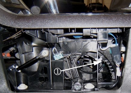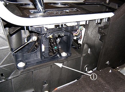 4. Locate the stepped selector section and detent spring on the shifter assembly (Acadia, Enclave and OUTLOOK automatic transmission control shown (1)).