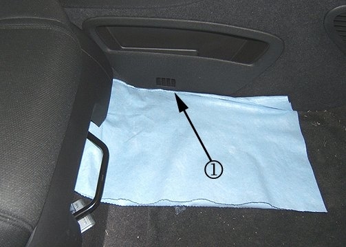 3. Protect the floor carpet panels on both sides of the console base with absorbent towels to prevent staining from the liquid cleaner used in the following steps (1).