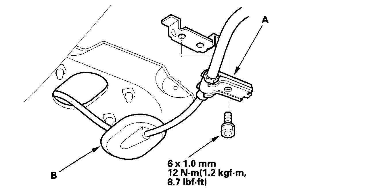 8. Remove the shift cable guide bracket (A) and grommet (B).