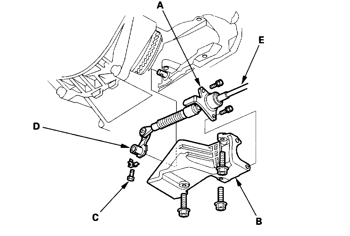NOTE: Do not remove the shift cable by twisting the shift cable guide pipe (D).