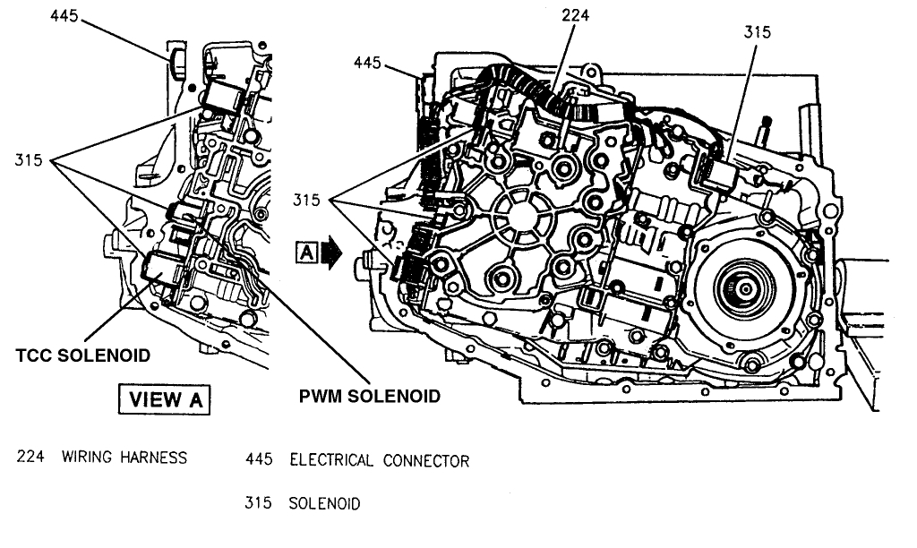 Now you have access to the solenoids and the wiring harness. They are easy to remove but may not be the problem.