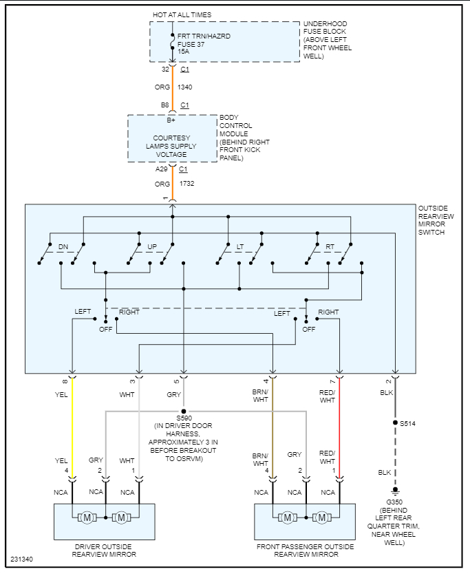 I would start by checking the fuse # 37 in the under-hood fuse panel here is a guide to help and the mirror wiring diagrams so you can see how the system works.