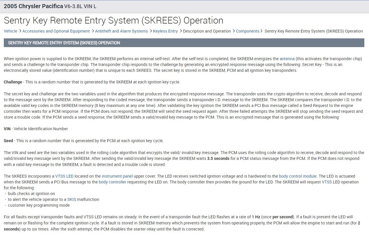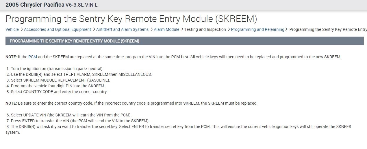 Just to jump in on this, if you take a look above at what Dan attached, you will see the info on how to program the skreem. However, if you have not replaced it and still have the same keys and it will not start, then I suspect you have a theft light remaining on. If that is the case, then it is because the module is broken and needs to be replaced.