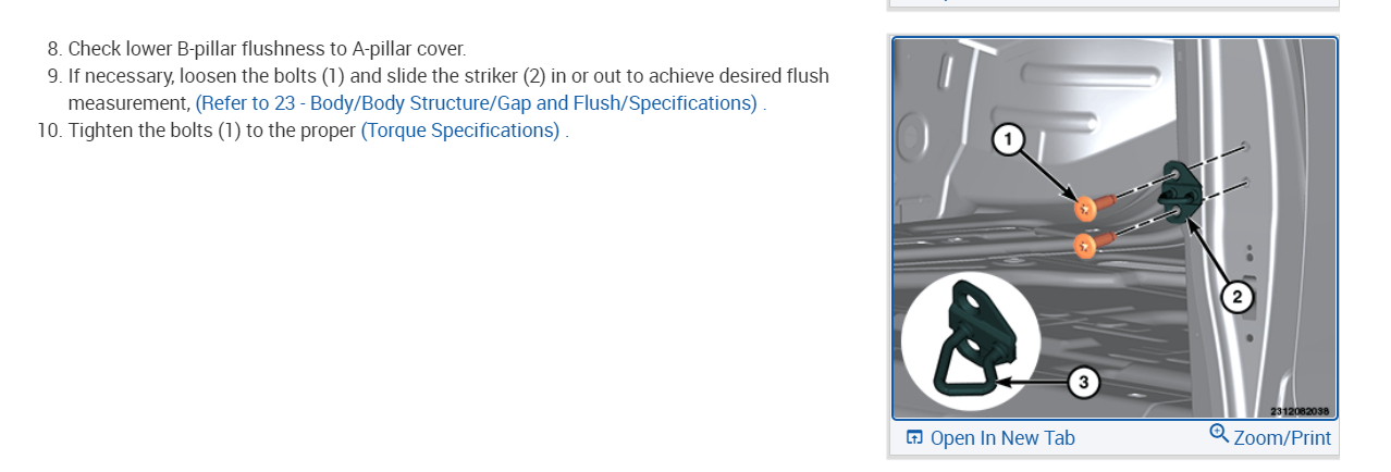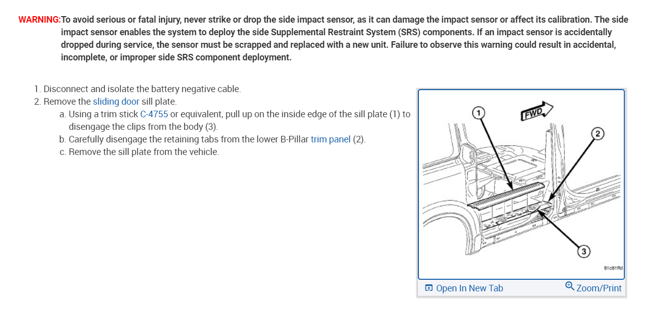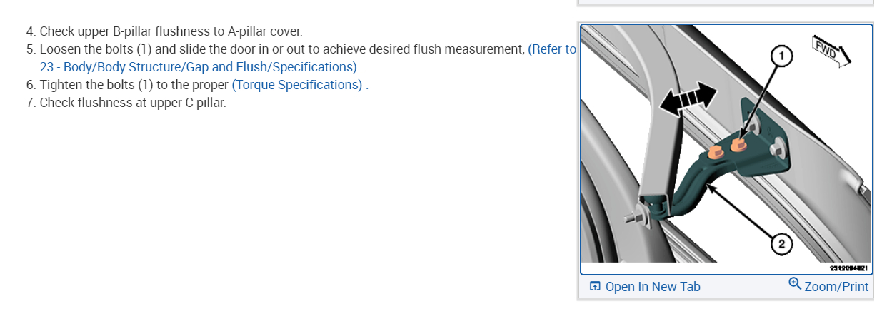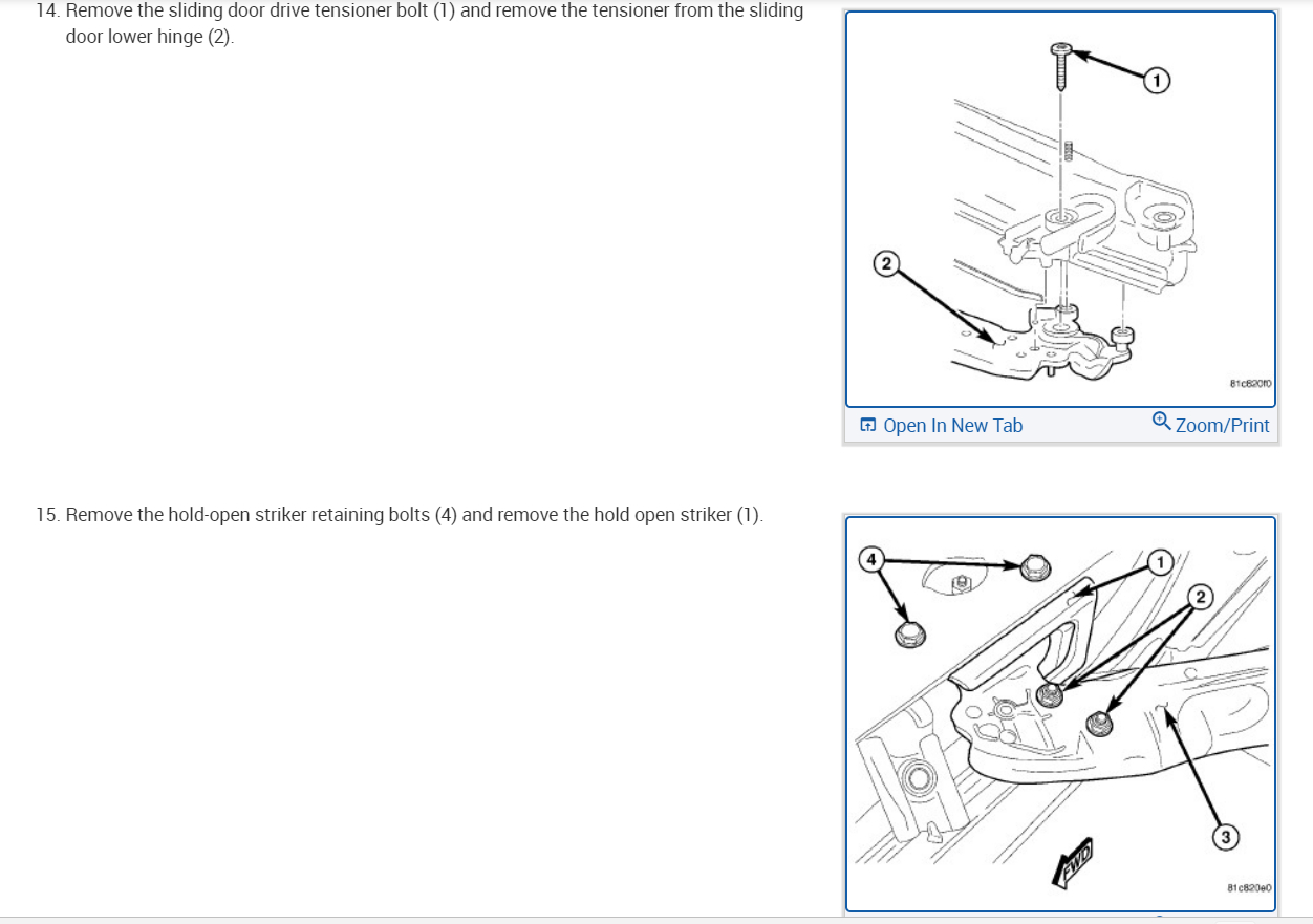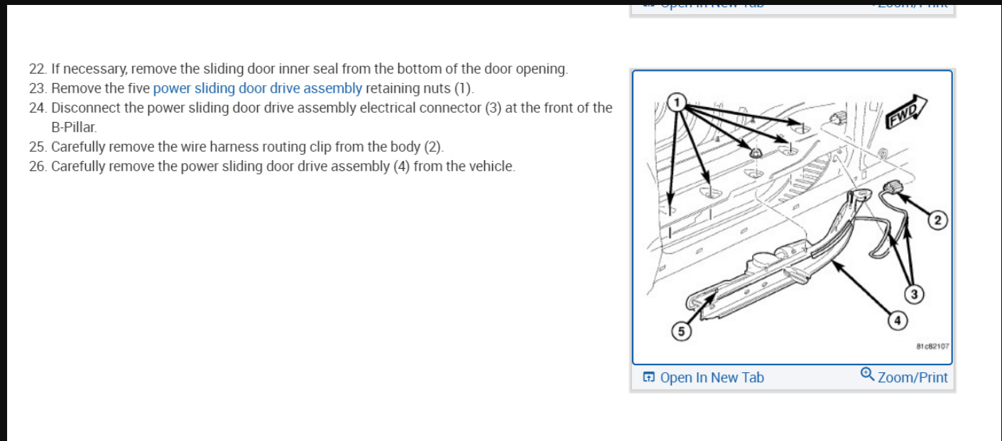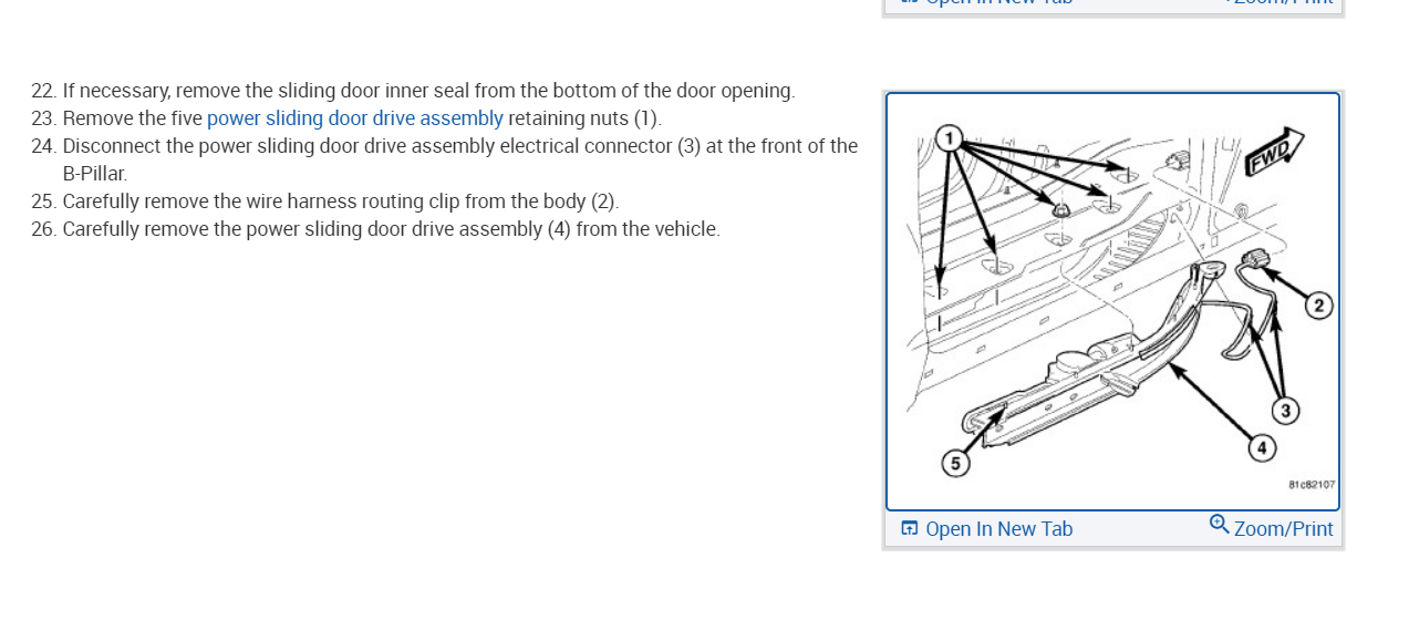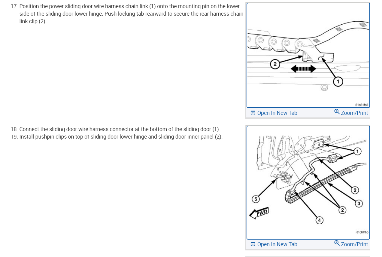 In order for the power sliding door system to function properly the door must move freely and smoothly. The power sliding door system can accommodate for some minor changes in the effort required to move the door. However, in extreme conditions the door may need to be mechanically adjusted for proper fit. (Refer to 23 - Body/Doors - Sliding/DOOR, Sliding/Adjustments) .