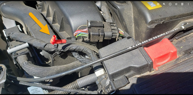 I just had a 50,000 check up on my car 3 weeks ago. Today I turned on the car and found the check engine light on. I popped the hood to check for any obvious items that might be wrong. I found a small clear hose with a red capped attachment sticking up in a way that's obvious that it was out of place. I can't figure out what it's should be attached to. Can anyone assist? Assuming that once it goes back to it's correct spot, the light will turn off.