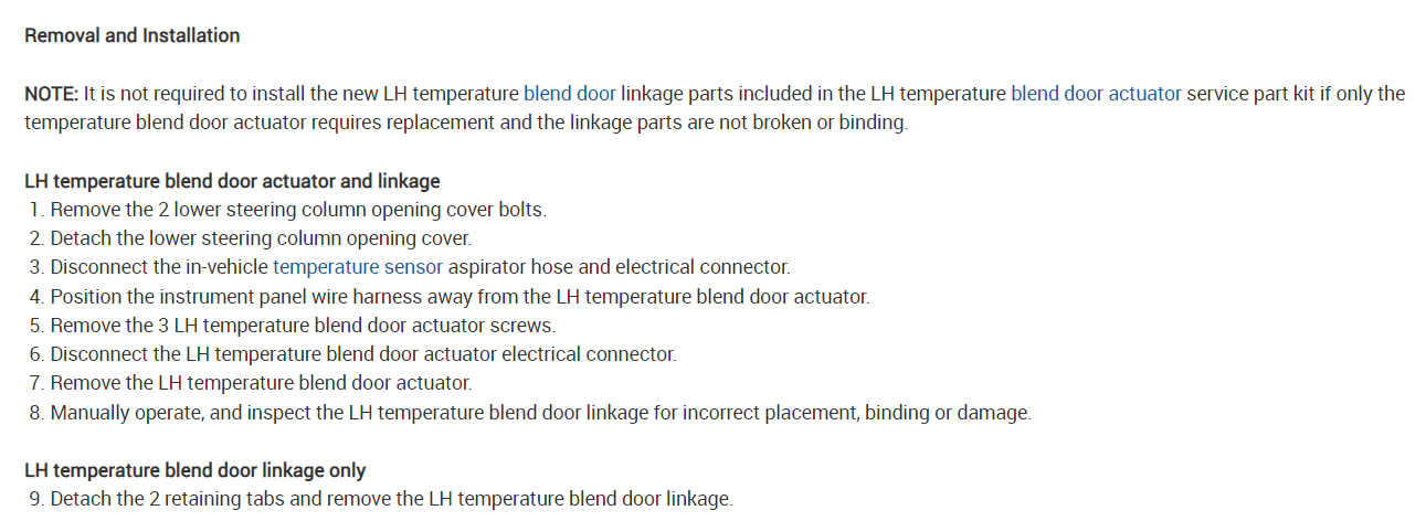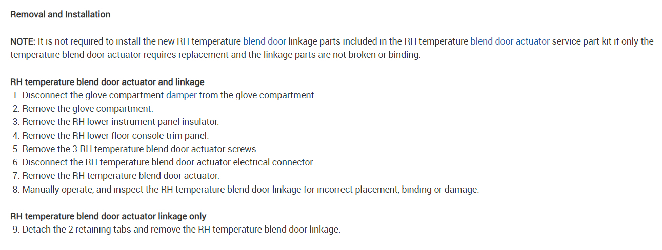 Sure, the left side blend door actuator is behind the dash trim panel and the right side is behind the glove box, here are the location and the instructions on how to change them out in the images below. Check out the images (below). Let us know if you need anything else.