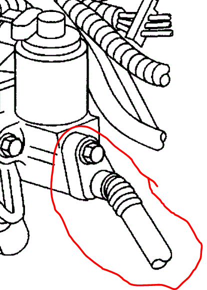 3. Remove the bolt retaining the pipe assembly from the EGR valve and carefully pull the pipe assembly back.