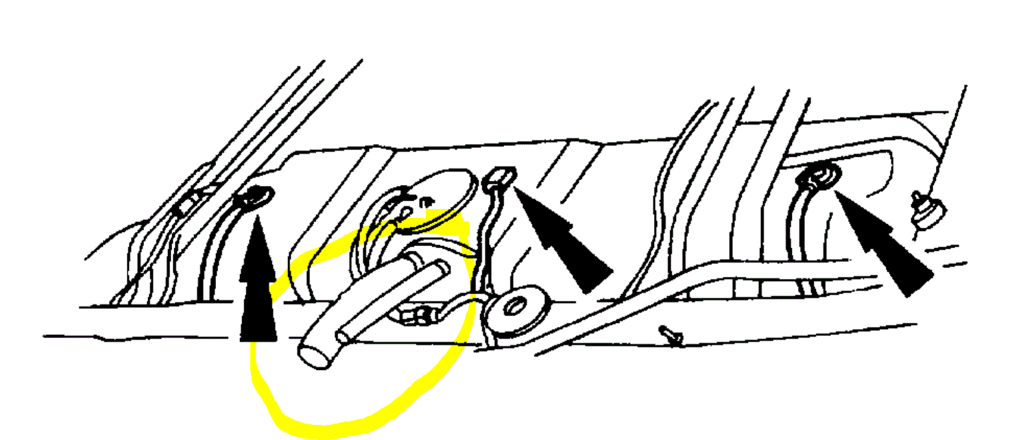 I was doing a smoke test on the Evap hose line (hooked up in the engine area) and noticed smoke coming out at the gas fill tube area. There are three hoses at the fill line tube. The regular gas line and a smaller tube next to it (not sure what they call it) but there is a, I guess about a half-inch hose attached to the gas fill line and after inspecting the area the half-inch hose was not connected to anything, just opened to the air, yet it was attached to the gas fill tube (side by side). I couldn't see anywhere that it would attach to. It's a tight area. I tried to follow the line and it appeared to go over the gas tank, but I couldn't say for sure.
