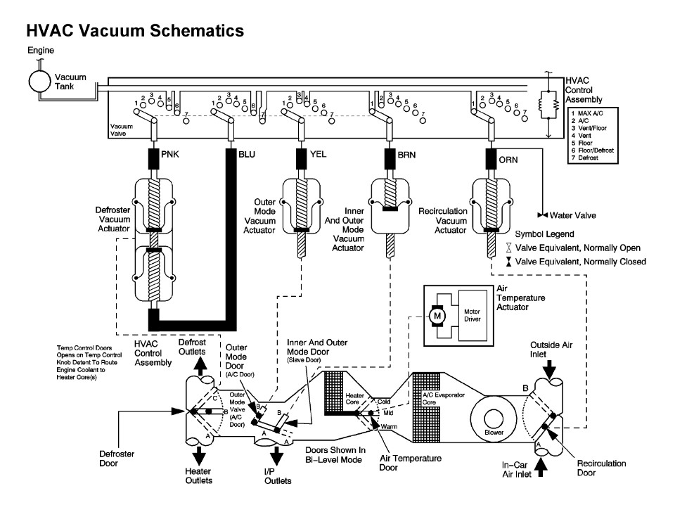 I can hear that my blower motor is working, my blend door actuator moves when I work the temperature adjuster, but I can't control where the air is coming out from. It's not blowing hot or cold air through the vents.